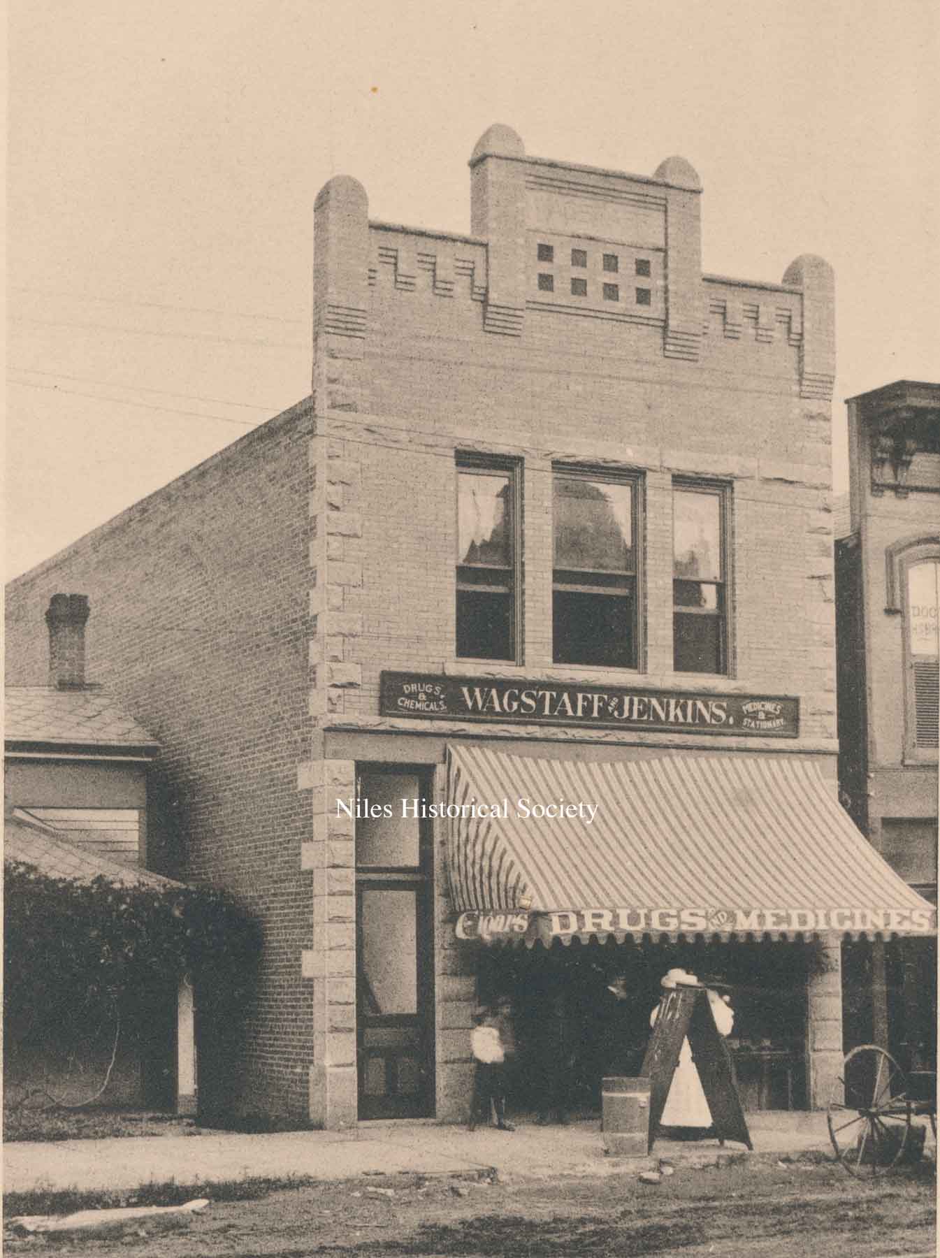This is a picture of Wagstaff & Jenkins Drugs located at 17 South Main Street and built in the late 1880's.