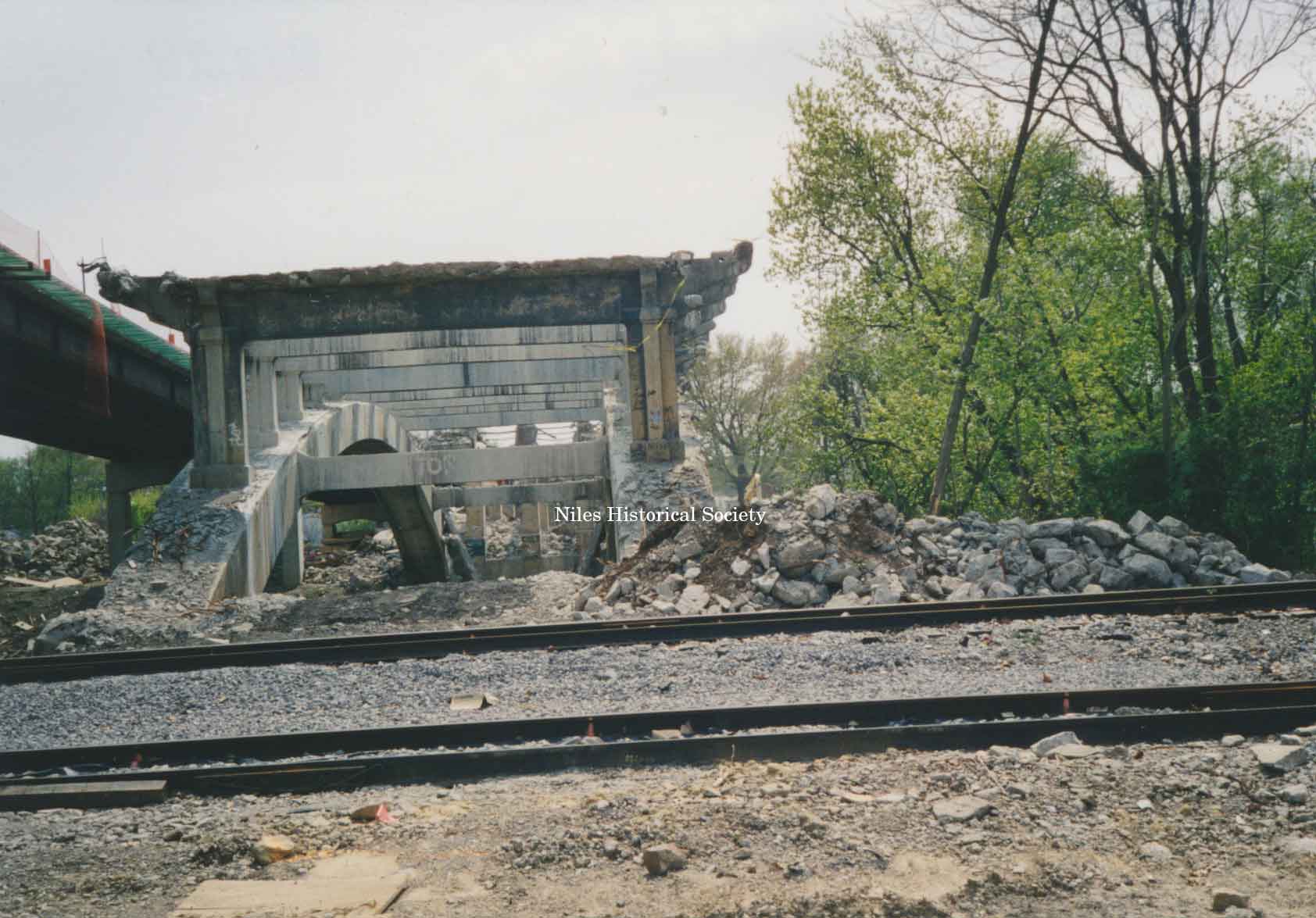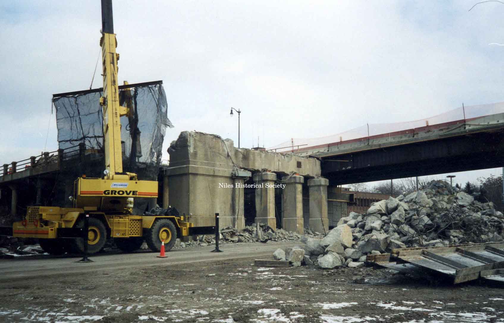 View of Main Street Viaduct being demolished