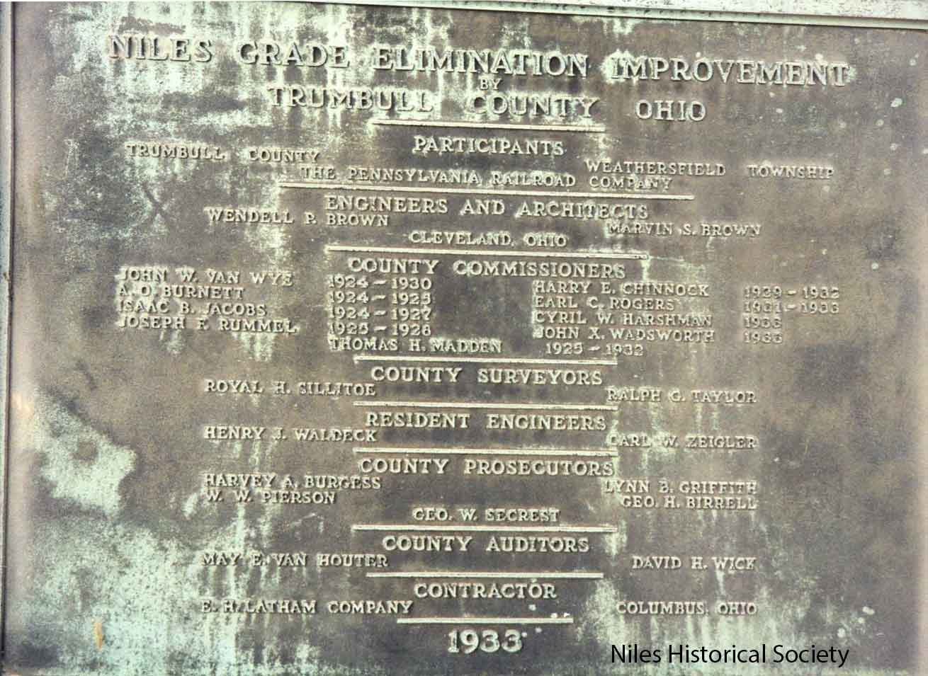 The brass plaque that adorned the 1933 viaduct over the Mahoning River. It was taken down during the 2002 re-construction.