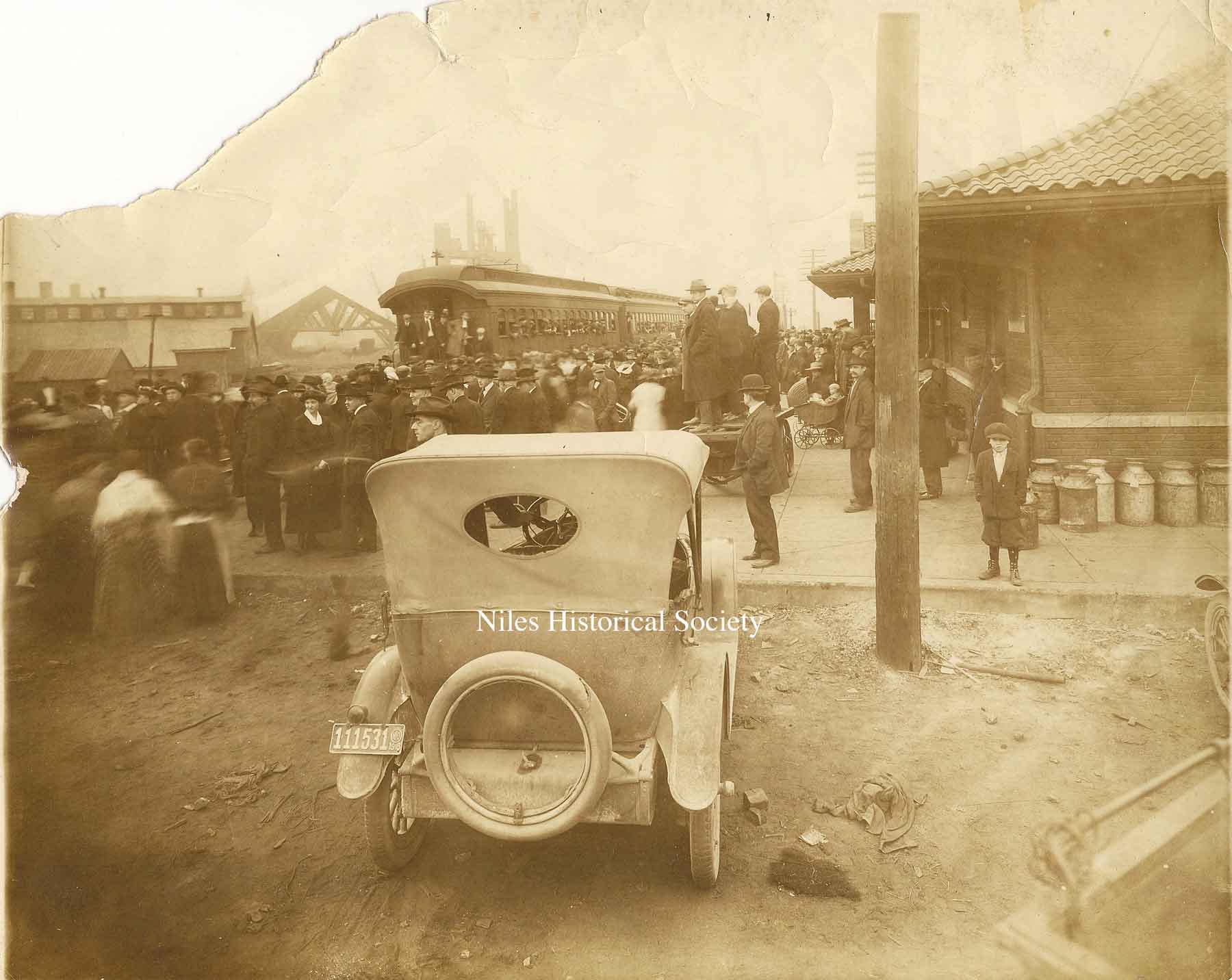 A small part of the crowd at the Erie train depot when the Niles boys left for Chillicothe, Ohio for WWI.