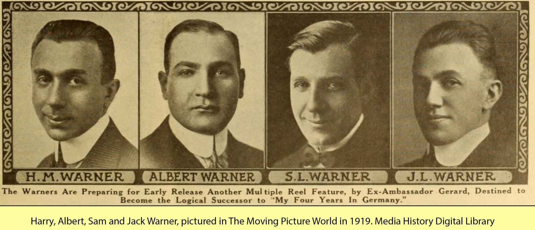 Harry, Albert, Sam and Jack Warner pictured in The moving Picture World in 1919.