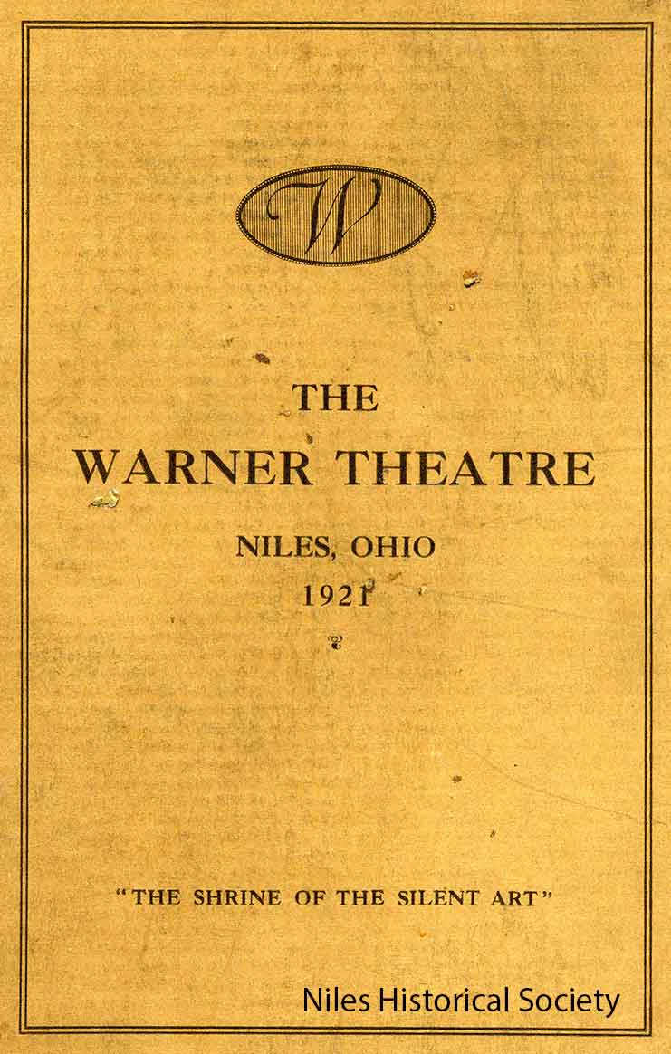 Cover of opening program for the Warner Theatre in Niles, Ohio. 1921