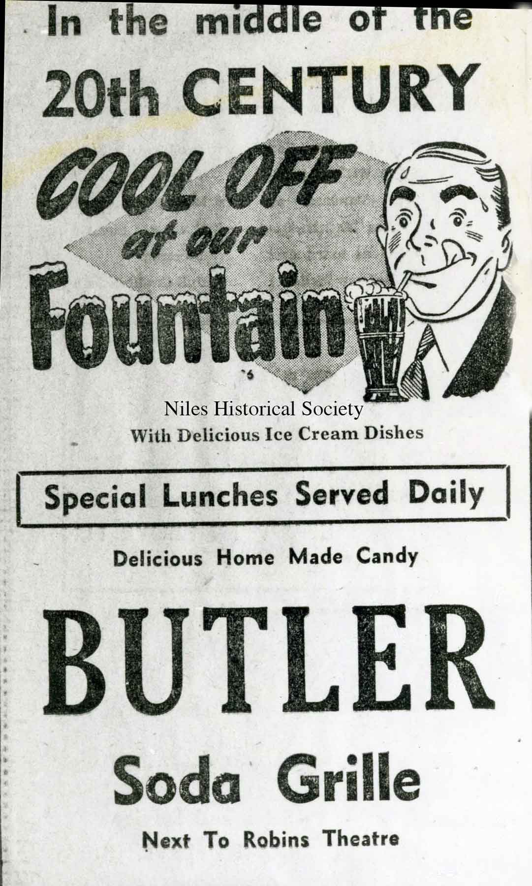 The Butler Soda Grille was located next to the Robins Theatre on South Main Street.