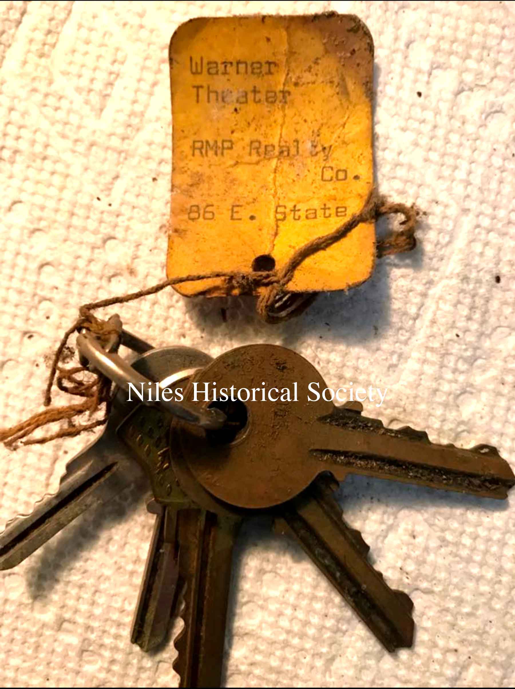 Photo of the keys to the Warner Theater located at 86 East State Street, Niles, Ohio.