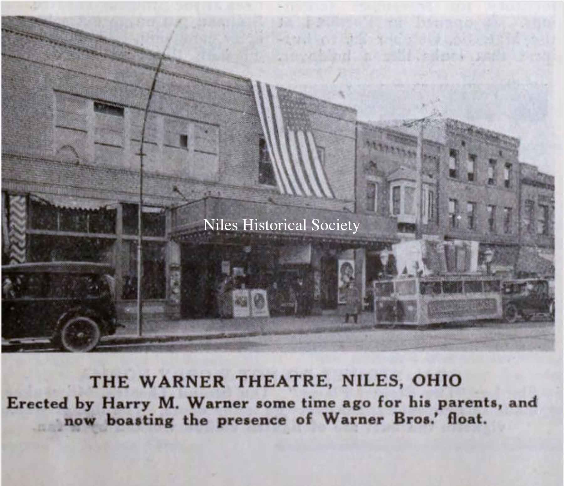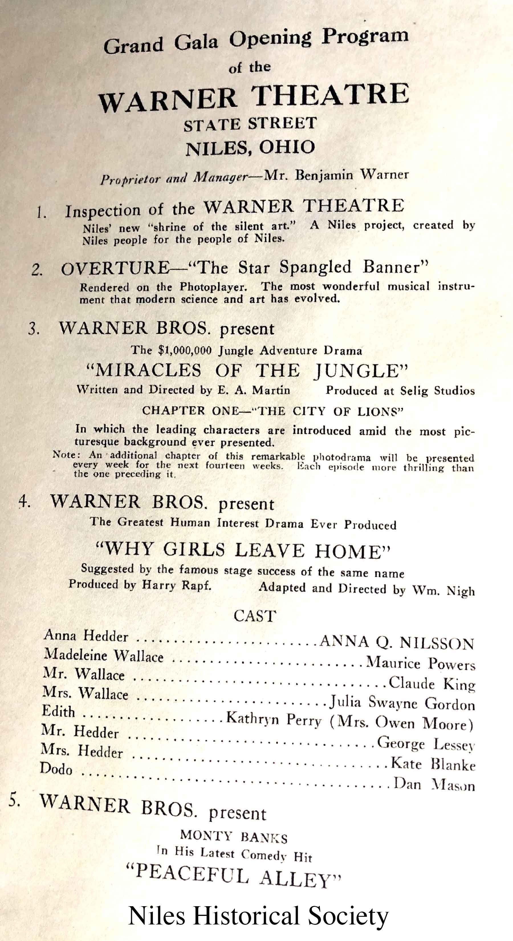 Original text from 1921 opening program of the Warner Theatre in Niles, Ohio.