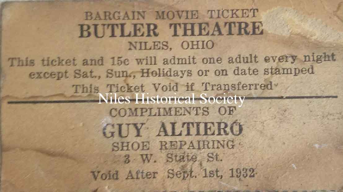 The Butler Movie Theatre was located on South Main Street. The Butler Soda & Grille was located on the south side of the theatre's entrance. 1927