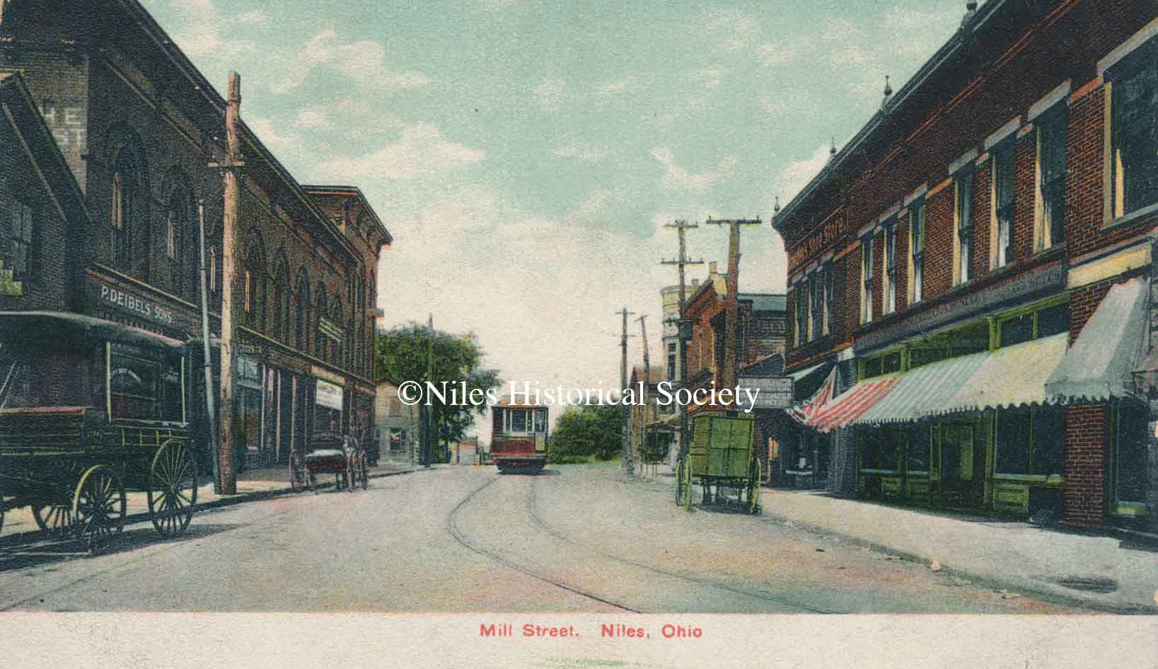 Niles residents remember the boys showing the silent flicks in the Diebel’s Butcher Shop on Mill Street (now State Street).